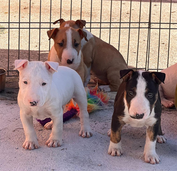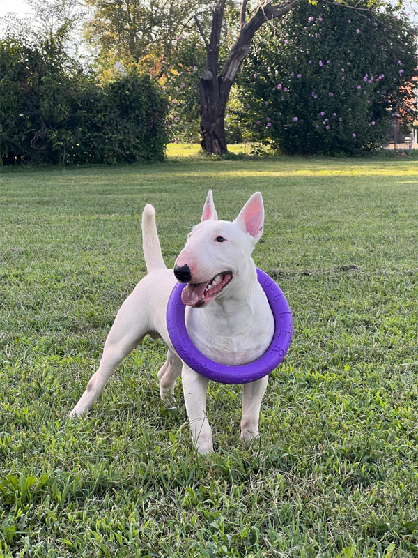 Il Bull Terrier Miniature è un cane compatto, muscoloso e dal carattere vivace, che unisce forza e dolcezza in un formato ridotto. È la versione “miniatura" del celebre Bull Terrier, riconoscibile per la sua testa a forma di uovo e il caratteristico naso romano.